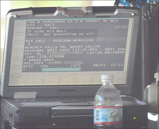 洛杉磯當?shù)貢r間26日凌晨24時21分,洛杉磯消防隊的護理人員突然接到杰克遜身邊的工作人員從杰克遜位于洛杉磯的家中打來的急救電話,聲稱:“一名50歲的男性沒有了呼吸!奔本热藛T8分鐘后抵達時才發(fā)現(xiàn)出事的是“搖滾天王”邁克爾·杰克遜,而當時他已經(jīng)沒了呼吸,也沒有了脈搏。醫(yī)務(wù)人員迅速將他抬上救護車,緊急送往加州大學(xué)洛杉磯分校醫(yī)療中心。