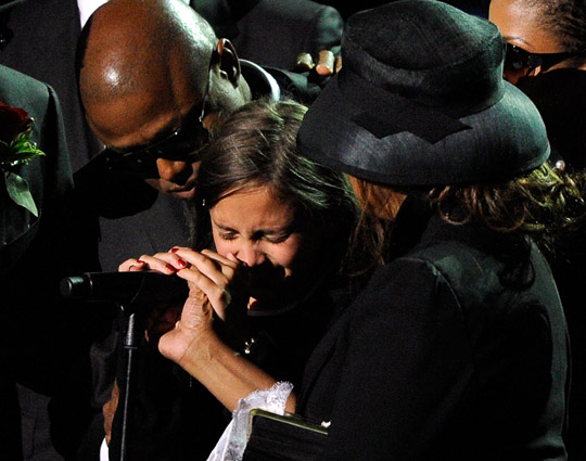 杰克遜在最后一刻上臺(tái)致詞,哥哥講到最后不能自控掩面痛哭,緊緊擁抱身邊的妹妹珍妮.杰克遜等家人,杰克遜的大女兒說(shuō):“從我出生以來(lái)他是我最好的父親,我只想說(shuō)我愛(ài)你!“場(chǎng)面感人,催人淚下。