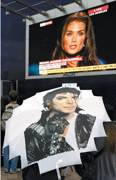 中新網(wǎng)7月9日電 在昨天凌晨舉行的邁克爾杰.克遜公眾告別式上,波姬.小絲感性致詞,令無數(shù)觀眾為之動容,外界都知道她曾與杰克遜交往,但最近她才在受訪時透露曾數(shù)度拒絕對方求婚。而杰克遜最崇拜的黛安娜.蘿絲缺席告別式,僅發(fā)表聲明表示自己的心已至?xí)䦂,假使杰克遜一家需要,自己會義不容辭照料杰克遜的孩子。