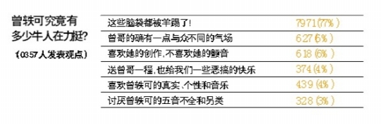 同樣在開心網(wǎng)上,針對(duì)“曾軼可身后究竟有多少牛人在力挺?”的帖子,有10357人(截至昨日)投票表態(tài),結(jié)果有7971人選擇了“這些腦袋都被羊踢了”記者 齊帥 實(shí)習(xí)生 戴曼曼