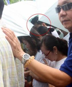 連日來“藏身”朱宅的華仔,在朱父出殯之日終“破功”,雖然他“被逼”出來面對眾人,但始終嚴守最后一道防線,朱家親友采用“傘遮人”政策(全體打開雨傘),讓華仔混在親友當中,并由一名高大印裔保鏢擋在其身邊,一直用手壓低華仔的頭,讓他由頭到尾“沒臉見人”。