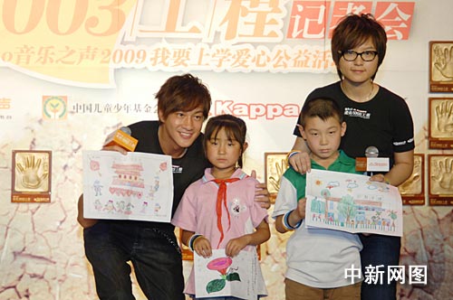 9月3日下午,“music radio我要上學(xué)——愛(ài)的5003工程”大型主題公益活動(dòng)在北京798藝術(shù)區(qū)正式啟動(dòng)。 “愛(ài)心大使”何潤(rùn)東、周筆暢、BOBO組合等藝人出席。2009年,music radio繼續(xù)攜手中國(guó)兒童少年基金會(huì),鎖定關(guān)注貧困地區(qū)學(xué)童的學(xué)習(xí)生活,聯(lián)手諸多明星藝人、社會(huì)精英、媒體在全社會(huì)范圍內(nèi)呼吁、希望愛(ài)心人士能加入愛(ài)的隊(duì)列。 中新社發(fā) 李學(xué)仕 攝