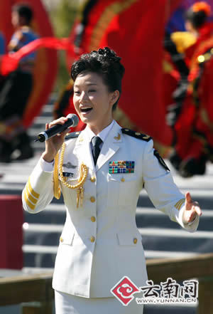 現(xiàn)場的最高潮出現(xiàn)在宋祖英出現(xiàn)時,當(dāng)一身戎裝的她還在舞臺后場待唱時,全場就響起了一片掌聲。在唱完一首《送你一朵東方茉莉》之后,她又演唱了一首《愛我中華》,將現(xiàn)場的氣氛帶至最高潮。