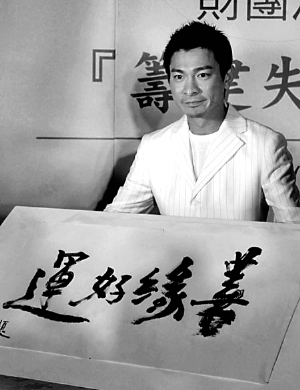 劉德華也寫得一手好書法,還不時即興揮毫作慈善拍賣。最高紀(jì)錄是2004年,劉德華為臺灣一間護老中心籌募興建費用時,其“善緣好運”墨寶賣出約80萬元。其實劉德華寫得一手好字,是因為他小時候家里開糖水店,那個時候劉德華每天負(fù)責(zé)寫糖水牌。因為糖水牌要給人看的,字寫得差了,自己覺得丟臉,因此,劉德華發(fā)憤苦練,字就越寫越好。