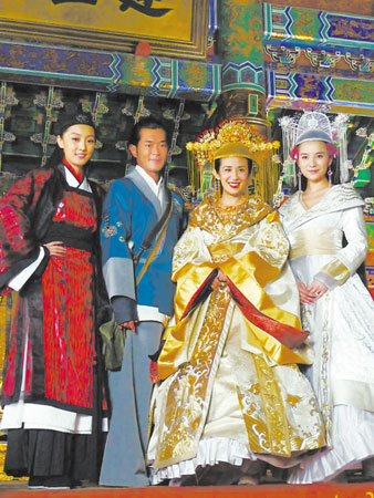 昨天,由王晶導(dǎo)演,匯集了古天樂、大S、吳君如、羅家英、林子聰、李健仁等笑星的古裝喜劇《大內(nèi)密探零零狗》對(duì)媒體開放橫店片場。頭戴黃金冠,身披黃金衣,首度以戲裝現(xiàn)身的吳君如的造型像極了《滿城盡帶黃金甲》里的鞏俐,山寨味十足。