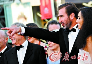 綽號(hào)是“國(guó)王”的前曼聯(lián)球星坎通納前日(18日)在一片球迷的歡呼聲中來(lái)到戛納,出席他出演的電影《尋找埃里克》的首映式。在首映式前的記者會(huì)上,坎通納的風(fēng)頭蓋過了英國(guó)導(dǎo)演肯·羅奇,成為記者提問的對(duì)象,電影記者會(huì)變成了一場(chǎng)球賽發(fā)布會(huì),“足球”占領(lǐng)了電影宮。