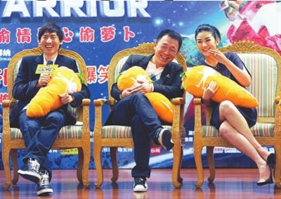 有人說“蘿卜”很像《瘋狂的石頭》,對于寧浩和田蒙兩個導(dǎo)演,黃渤說,惟一的共同點(diǎn)就是跟他們合作都很“痛苦”:“跟寧浩合作就是痛并快樂著,追求完美到?jīng)]邊兒的地步;田蒙是新導(dǎo)演,但把我折磨得也不輕,《倔強(qiáng)蘿卜》是在哈爾濱拍的,那叫一個冷啊,我們拍戲的那條河,電影里看不出來,但實(shí)際上已經(jīng)凍了1米多黃渤深了。”黃渤感慨地說,“所有演員都知道跟新人導(dǎo)演合作的風(fēng)險,我也當(dāng)過新人,知道這第一次有多難。我希望大家多給一些年輕導(dǎo)演機(jī)會!