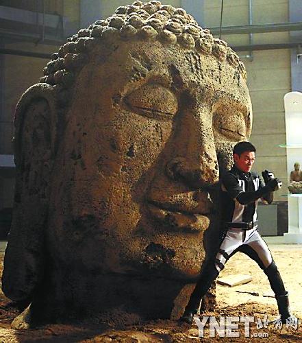 雖然已事先備下了保護措設,但在推動佛像的過程中,千余斤的巨物突然失控,瞬間重重砸下,將劉德華劈頭蓋臉整個壓在下面,F(xiàn)場的工作人員嚇得忙一擁而上將劉德華攙扶起來,不料卻又導致畫面穿幫而無法使用。劉德華此時雖然一身疼痛,被重壓折磨得喘不過氣來,卻毫無怨言,恢復過來后毅然再次親自上陣。為了達到最震撼的視覺效果,每一次拍完后,劉德華還會不顧疼痛,跑到監(jiān)視器前面回看拍攝畫面,有不甚滿意之處就要求重拍。每一次都險象環(huán)生,劉德華卻鎮(zhèn)定地勸慰工作人員不要緊張,他的敬業(yè)精神令在場的工作人員敬佩感動不已。