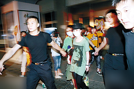 7月11日晚上7時(shí),阿嬌抵達(dá)哈爾濱參加嘉年華活動(dòng)。她出機(jī)場(chǎng)時(shí)頭戴禮帽,面戴口罩,二十多名貼身保鏢護(hù)駕。她身穿一件印有墨色男人頭像的大T恤,無(wú)獨(dú)有偶,陳冠希7月10日在香港出席陸永“棟篤笑”演出拜神儀式時(shí),也穿著同款式T恤———這對(duì)舊情人真是心有靈犀!