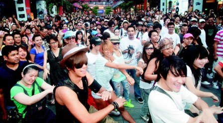 “今日新聞”消息,自從流行樂天王邁克爾.杰克遜辭世后,世界各地不斷傳出為了紀(jì)念他而辦的快閃活動。臺灣地區(qū)也不落人后,知名舞者大目昨天發(fā)起快閃活動,透過網(wǎng)絡(luò)號召杰克遜粉絲,加上舞者,約有500人集體大秀杰克遜經(jīng)典舞蹈《Beat It》,一同跳出對他的無盡思念。