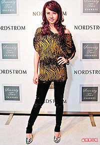 目前在美國10多個(gè)城市及加拿大都可看到“72變”,最快明年進(jìn)軍內(nèi)地、新加坡、馬來西亞市場,她昨天被問臺(tái)灣地區(qū)何時(shí)可買到“72變”服飾,笑說:“還不知道,我比任何人都希望越快越好!弊蛱飕F(xiàn)場展示她設(shè)計(jì)的1千件限量T恤,1件約1500元臺(tái)幣,當(dāng)場被搶購一空,為公司進(jìn)帳臺(tái)幣150萬元。