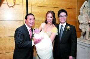 千億新抱徐子淇與丈夫李家誠的次女李晞兒前日滿3個月大,下午先舉行“ Secret Garden”兒童茶會,晚間又舉行豪華百日宴,估計花費約300萬元。雖然不及姐姐晞彤當初連擺兩晚的800萬元“發(fā)實宴”,但同樣深受寵愛。