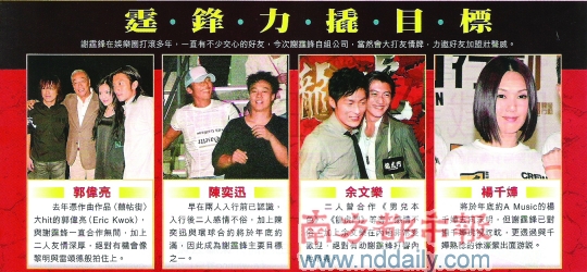 謝霆鋒自組公司的傳聞不是一天兩天的事兒了,昨天新鮮出爐的香港某周刊又重提“舊事”,稱盡管英皇開出不少優(yōu)越條件留人,但謝霆鋒“去意已決”,而老婆張柏芝亦是“無限量支持”,當(dāng)做新公司第一簽約藝人。據(jù)稱謝霆鋒心中已有不少“挖墻腳”的人選,目標(biāo)包括陳奕迅、楊千女華、余文樂等一幫友人,楊千女華對(duì)此以“還沒正式談,我自己都還不知道,告訴你什么呢?”作回應(yīng)!x霆鋒與英皇的合約尚未到期,為何老刮“跳槽”這陣風(fēng)?恐怕是:管它真亦假,先炒再說!