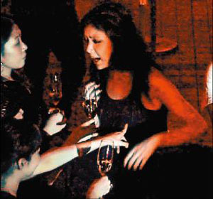最新香港某雜志報(bào)道,樂基兒當(dāng)晚一身黑色皮衣裝扮相當(dāng)引人注意,她一到派對現(xiàn)場馬上褪下外衣,僅著黑色背心,不停與朋友打招呼合照。隨后她走到二樓VIP區(qū)后,便躲在暗處和友人喝香檳;不久她又回到樓下,因?yàn)楹攘瞬簧傧銠壎@得有些醉意,竟開始對現(xiàn)場男女賓客又摟又抱,碰到女友人,還大膽嘴對嘴親吻;至于男友人,則是跨坐到對方身上,行徑大膽,完全忘了“人妻”的身分。