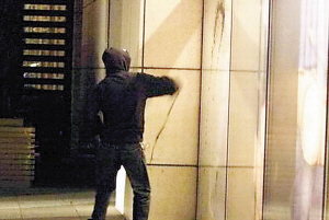 12月23日晚11點左右,在張曼玉訂婚的北京柏悅酒店外,一輛黑色奧迪Q7里下來四五個統(tǒng)一著迷彩樣服裝、戴著墨鏡的男子,走進酒店問大堂里的保安:“章子怡住幾層?”保安未予理會,這幾個人立刻站在酒店大堂內(nèi),用略帶東北口音的普通話高喊:“章子怡,大傻X!騙人錢!勾引人老公!”隨后離去。大約半小時后,這輛車又開到了酒店門前。車上下來兩個用套頭衫裹著自己的男子,手里拿著墨汁,走到酒店門東側(cè)一間章子怡代言的鉑金店門前,沖櫥窗里的章子怡海報潑了上去,然后撒腿跑向汽車。之后這輛車拉著警報離開。