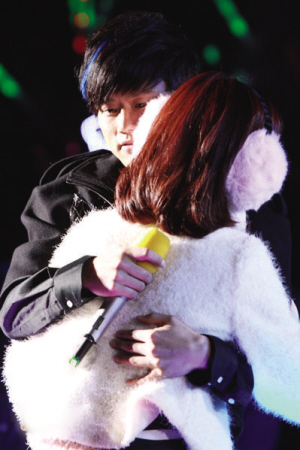 張杰與謝娜的戀情從2007年延續(xù)至去年,其間話題始終不斷,就在兩個(gè)月前,兩個(gè)人還傳出了分手的消息,但到了跨年演唱會(huì)當(dāng)晚,人們看到的依然是一如既往的甜蜜畫面:在演唱會(huì)的舞臺上,張杰深情地看著謝娜,還沒開始唱歌,謝娜的眼淚就已流了下來,接下來,張杰更現(xiàn)場改掉了《何必在一起》的歌詞,兩個(gè)人一起唱出了“我們要在一起”,當(dāng)張杰擁抱住已經(jīng)哭成淚人的謝娜時(shí),場面被渲染得如偶像劇一般浪漫感人,粉絲更是尖叫連連。