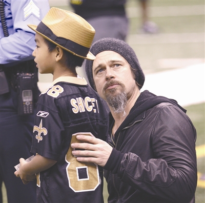 美國(guó)當(dāng)?shù)貢r(shí)間1月16日,布拉德·皮特帶著養(yǎng)子馬多克斯和導(dǎo)演斯派克·李現(xiàn)身美式橄欖球賽場(chǎng),在比賽間隙,皮特利用明星身份帶著兒子與偶像隊(duì)員來(lái)了個(gè)親密接觸,滿足了球迷兒子的小心愿。