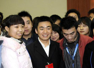 會(huì)議休會(huì)之后,工作人員安排他與邢臺(tái)的黨政領(lǐng)導(dǎo)見面,聞?dòng)嵍鴣淼拇髸?huì)志愿者們和大會(huì)部分工作人員爭相與王寶強(qiáng)合影留念,一時(shí)間見面會(huì)現(xiàn)場擁擠不堪亂作一團(tuán)。