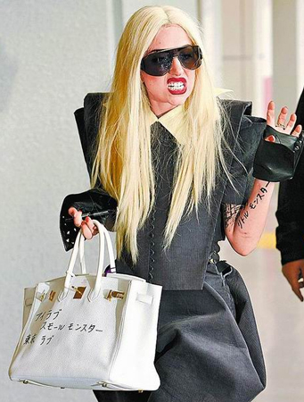 報(bào)道描述,Lady Gaga手跨柏金包,用日語(yǔ)寫(xiě)著“我愛(ài)小怪物,我愛(ài)東京”,不知是不是要討好日本歌迷。
