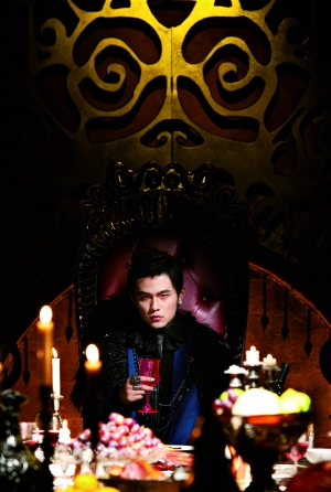 在昨日公布的預(yù)購海報(bào)上,周杰倫化身中世紀(jì)的吸血鬼,坐在餐桌前擺出若有所思狀,臉色蒼白。造型師為周杰倫在指甲上貼上有鉚釘?shù)闹讣灼劬镞戴了特殊的隱形眼鏡,塑造出“動(dòng)物般的直立橢圓瞳孔”。周杰倫說自己在剛開始戴上這些“裝備”時(shí),覺得渾身不舒服,不過隨著整體造型的完成,他覺得自己越來越有一個(gè)真正吸血鬼的感覺了。