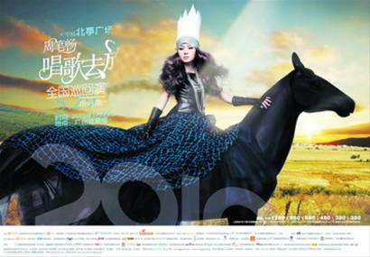 周筆暢出道5年首次個(gè)人巡回演唱會(huì)“唱歌去旅行”即將于5月29日在廣州啟航,近日在記者會(huì)上揭幕了演唱會(huì)海報(bào),當(dāng)海報(bào)完整出現(xiàn)時(shí),臺(tái)上的主持人也不禁大呼“筆筆,這是你嗎?! ”海報(bào)的背景是一片猶如夢(mèng)境的開闊園地,周筆暢出道后第一次摘下了標(biāo)志性的眼鏡,更戴上了嫵媚的長卷發(fā)和雍容的白色皇冠,身穿2米長的紗裙坐在黑色駿馬之上,仿佛化身為馳騁夢(mèng)境的女王,呈現(xiàn)出“脫胎換骨”般的戲劇性效果。(齊書勤)