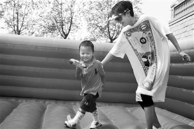 “平時(shí)真沒時(shí)間這么陪他玩,今天(2日)是他的生日,怎么也得好好陪陪他!睂O悅喘著氣說。她剛把水槍放下,小儒生又跑了過來,拉著她上氣墊床上玩。