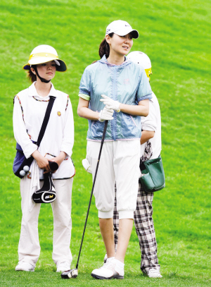 而潘蔚上場打球的時候,每一個招式都很專業(yè),一旁的球童告訴記者:“潘蔚是所有來的女明星中打得最好的,有時候比孫楠還打得好!碑(dāng)記者將鏡頭對準(zhǔn)潘蔚時,身旁的孫楠立刻將手遮住潘蔚的臉,不愿意妻子曝光在媒體面前。