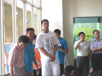 昨天上午何守正和籃球隊隊友參加德霖技術(shù)學(xué)院發(fā)愿樹活動,第一個節(jié)目是學(xué)生表演原住民舞蹈,伴奏舞曲正是張惠妹唱的張惠妹《站在高崗上》。當(dāng)阿妹的歌聲響起時,許多師生不約而同把目光掃向何守正,還有學(xué)生聽到阿妹的歌,驚呼:“這么巧,不會吧?”