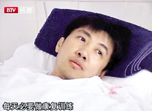 《法治進行時》記者走進病房時,鄢頗躺在病床上,李小冉就坐在一邊。鄢頗看上去雖然很虛弱,但是精神還不錯,還不時和李小冉有說有笑。他給記者看了右臂和右腿打的石膏:“打著石膏的三處都是有骨折的!薄昂笃谛枰畈欢喟肽甑揭荒甑拿刻毂匾目祻(fù)訓(xùn)練!闭f起鄢頗的傷情,李小冉忍不住再次落淚:“愛一個人就是,你會覺得雖然很累,但是你心里是很開心的,然后看著他一天天好起來,你會覺得特別踏實!