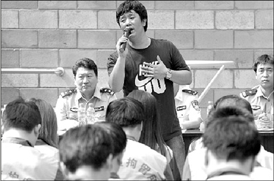 剛走進(jìn)會(huì)場(chǎng)的含笑,在看到眾多媒體記者后說:“拍我沒關(guān)系,請(qǐng)不要拍這些朋友的正面,他們出去還要重新做人!敝灰痪湓捑挖A得了數(shù)十名在押人員的掌聲。