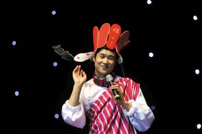 在終于等到“男主角”小沈陽一身跑偏的蘇格蘭裙上場(chǎng)后,更多女粉絲對(duì)他的招牌瞇眼一笑報(bào)以瘋狂掌聲,依然《我是小沈陽》,依然抱著小花包啃蘋果,再加上5月1日與成龍、趙本山合唱的《我的好兄弟》——這些早已在網(wǎng)絡(luò)上流行的段子絲毫沒有影響臺(tái)下觀眾的興高采烈。而小沈陽牽著童趣十足的玩偶小馬,頭戴鞋墊帽,對(duì)媳婦兒一句“御弟哥哥”回以“八戒”的山寨版《西游記》,雖然此前也在其他巡演站亮相,在申城卻已算新鮮成分,贏得了觀眾不少掌聲和歡笑。