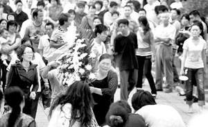 昨日20時(shí)20分,工作人員陸續(xù)離開(kāi),仍有百余名觀眾不肯離去。