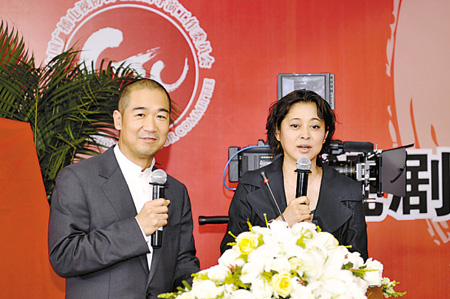 昨天的成立大會(huì)更像是一場眾導(dǎo)演的聚會(huì),不少人都身穿便服到場,而主持人倪萍和張國立更是大搞冷幽默。倪萍先把“矛頭”對(duì)準(zhǔn)央視:“中央臺(tái)影視部的汪國輝主任,你們最招人恨了。到底什么樣的戲能上你們央視呀?今天倒是講講清楚!”接著她話鋒一轉(zhuǎn),又把責(zé)任推給張國立:“這事跟我沒關(guān)系,是張國立教我說的。”被“陷害”的張國立只好干笑兩聲。會(huì)場氣氛分外輕松。