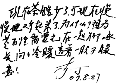 東方聞櫻說,李丁多次打電話詢問開播的消息,今年春節(jié)老爺子還抱怨:“我好不容易當了回男主角,這下可好,讓我等了3年還沒結果,真要等我‘走’了才播。课已萘四敲炊鄳,不在乎露不露臉兒,我遺憾的是老年人的電視劇為什么跟人見面這么難!”東方聞櫻提起這段往事非常心酸。在她眼里,李丁是個幽默感十足的智慧型老人,尤其在表演上有思想!霸趧〗M里,我總愛跟他談心。別人都認為李丁腦子糊涂是老年人了,可我知道他心態(tài)年輕是個老頑童!睎|方聞櫻表示,近日她將趕往李丁的家中吊唁,帶去《老人的故事》送老爺子走完最后一程。記者 楊楊 王錚