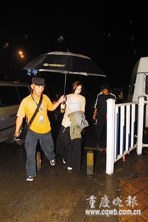 當晚凌晨,范冰冰乘一輛黑色別克轎車到達超市外的公路旁。范冰冰顯得非常隨意,下車之后閑庭信步地在沿公路走到超市,只有一個工作人員拿著一把大傘上前“接駕”。范冰冰當晚已是帶妝到達片場,穿著一身連衣裙,看上去非常優(yōu)雅?吹接杏浾吲臄z,撐傘的工作人員馬上學(xué)習(xí)劉德華、趙本山的經(jīng)驗,一把大傘將范冰冰遮得嚴嚴實實。
