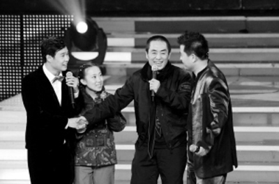 眼看唱主題歌的事要黃了,小沈陽和毛毛終于使出最后一個殺手锏:請出自己的舅姥爺,這舅姥爺并不是大病初愈的趙本山,正是《三槍拍案驚奇》的導(dǎo)演張藝謀。幾乎“絕跡”綜藝類節(jié)目,這次也算是為新片獻出了綜藝“處女秀”。至于為什么成了小沈陽和毛毛的舅姥爺,張藝謀的解釋是,我和丫蛋的爺爺(指趙本山)是好朋友!有了舅姥爺?shù)闹С,小沈陽和毛毛接下來的表演更賣力了,他們和《星光大道》的選手李玉剛等,進行了一系列的PK,可最后的結(jié)果還是不分伯仲?粗@兄妹倆不停的鬧騰,張藝謀最后發(fā)話了:“小沈陽,你也別在人家《星光大道》上胡鬧了,就跟我走吧,不看僧面看佛面,看在丫蛋她爺爺?shù)拿嫔,《三槍拍案驚奇》的主題歌,就讓你唱吧!”