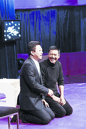 發(fā)哥上臺(tái)的第一句話就和朱軍談起了他在書中看到的朱軍父親的故事,孝順是溝通兩個(gè)中年男人最好的寒暄語,于是節(jié)目一如既往的順利,觀眾的掌聲和笑聲此起彼伏。發(fā)哥場(chǎng)上也不拿自己當(dāng)外人,“擅自指揮”“關(guān)燈”,實(shí)施自己的節(jié)目計(jì)劃,當(dāng)發(fā)哥跪在舞臺(tái)上,并傾情的講述緣由的時(shí)候,朱軍以同樣誠(chéng)意的姿勢(shì)“還禮”。發(fā)哥執(zhí)意要給朱軍行一個(gè)叩拜大禮,叩拜的原因是朱軍對(duì)仙逝父親的孝順,叩拜的是一種禮儀,更是一種精神,源于拍攝孔子數(shù)月的體會(huì)。這是我在《藝術(shù)人生》開播的9年中,見到的嘉賓中絕無僅有的表達(dá)方式,我們也被深深打動(dòng),這個(gè)對(duì)于中國(guó)人來講,最重要的禮儀姿勢(shì),是絕對(duì)不能拿來娛樂的。我們也佩服發(fā)哥的膽量,我們尊重發(fā)哥,是因?yàn)樗鹬毓?jié)目,尊重了我們心中共同的誠(chéng)意和精神。