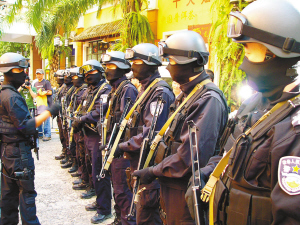 昨天下午,一隊12人的特警走進片場,他們蒙著臉,穿著戰(zhàn)術(shù)背心,戴著頭盔和護目鏡,這些身挎79式微型沖鋒槍、腿掛92式手槍的特警,是劇組專門從景洪市公安局借來的,除了沒裝子彈,所有裝備都是真家伙。