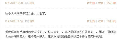 上周章子怡海報被潑墨,有媒體報道稱幕后策劃是和章子怡合作過的某女子,有網友猜測是傳媒大亨默多克妻子鄧文迪,一時間傳得沸沸揚揚。而洪晃則在微博爆料稱“這女人當然不是鄧文迪。據(jù)我所知打手幕后的女人沒老公,給人當老三……”