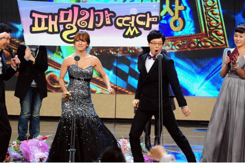 盡管《家族誕生》因引發(fā)各種爭議而暫時陷入困境,但劉在錫憑借扎實的主持功底將節(jié)目守護到底,因此獲得大獎。歌手出身的李孝利則在該節(jié)目中大膽褪去韓國最性感歌手的形象,毫無保留地展現(xiàn)出“雷人”形象,深深吸引了觀眾。