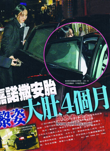 為生仔改名“黎珈而”的黎姿自成功“加兒”后,一直安心養(yǎng)胎甚少露面。昨日新上市的《壹周刊》又爆新料,雖然大部分時(shí)間都留家安胎,不過一向幫忙打理弟弟黎嬰美容診所生意的黎姿上月底也現(xiàn)身視察公司事務(wù),全程都由司機(jī)接載。一身黑色長外套裹住的黎姿,在上車一刻因外套揚(yáng)起露出白色打底衫,四個(gè)月的“大肚照”終掩不住,曝光了!而一向?qū)枳颂蹛塾屑拥鸟R廷強(qiáng),聽說自老婆懷孕后也變成緊張大師,減少出外應(yīng)酬抽更多時(shí)間陪黎姿在家安胎。