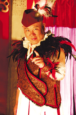 內(nèi)地全新翻拍的文化喜劇《三笑之才子佳人》4月底上映在即,昨日片方發(fā)布了一組新鮮曝光的劇照。其中郭德綱在片中飾演的唐伯虎造型頗令人意外。他領(lǐng)銜主演的唐伯虎,雖為風(fēng)流才子,長(zhǎng)袍加身但仍然極少戴書(shū)生帽,而仍然以招牌光頭來(lái)演繹這個(gè)“憨厚版唐伯虎”。但影片一開(kāi)始,這個(gè)“憨厚版唐伯虎”由于需要以歌傳情,遇見(jiàn)秋香時(shí),正在舞臺(tái)上表演個(gè)人演唱會(huì),因此這一幕的造型頗為突破:只見(jiàn)郭德綱打扮成現(xiàn)代版搖滾歌手模樣,頭上還帶著長(zhǎng)長(zhǎng)的雉尾做成的帽子,更有一種歐洲宮廷味道。郭德綱對(duì)這一搞怪造型頗為滿(mǎn)意,說(shuō):“服裝設(shè)計(jì)時(shí)融入了很多加勒比海盜的靈感,狂野的造型,說(shuō)明有一種文人也瘋狂的感覺(jué)”! ●R 彧