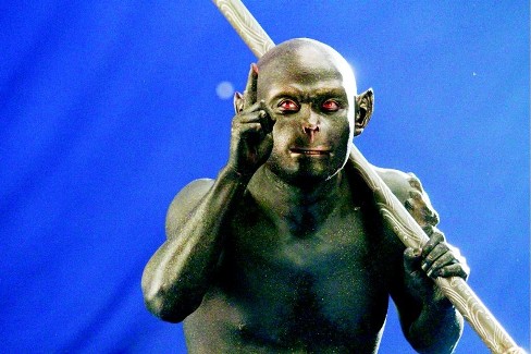 已經(jīng)進入最后拍攝階段的張紀中版新《西游記》日前又曝光一組孫悟空的全新造型,傳說中的“裸戲”也揭開神秘面紗。據(jù)記者了解,此次曝光的劇照,專為孫悟空被太上老君煉丹爐煉燒的戲份設計。從劇照中看,由于猴毛在煉丹爐里完全被燒光,這個造型中,吳樾脫掉“猴毛衣”,取而代之的是包括眼睛、嘴唇在內(nèi)身上每一寸皮膚都涂滿烏金色的金粉,整個人都如少林寺18銅人一般,整體看起來就是一個具有中國特色的“阿凡達”。
