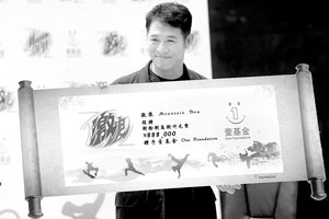 隨后,另一位超重量級大腕——百事公司董事長兼CEO盧英德現(xiàn)場將上書888000元人民幣的捐款匾額贈與了李連杰一手創(chuàng)辦的壹基金,這才讓所有人恍然大悟:原來是精舞門的贊助商出了血本,難怪請得動他回國打照面!