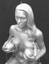 這座雕塑是朱莉在給一對雙胞胎喂奶的裸體坐像,作者為紐約藝術(shù)家丹尼爾·愛德華茲。雕塑將于9月11日在俄克拉何馬州諾曼市MAINSITE當(dāng)代藝術(shù)館亮相。