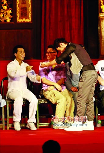 甄子丹當日以一身白色功夫裝亮相,在隨后的發(fā)布會,眾多媒體見證了他一次收下黃曉明、釋小龍和蔣岱言三位徒弟。“海選”出來的“小李小龍”蔣岱言現場耍雙截棍,還虎虎生威地打了一套拳。之后,黃曉明等三人一起向甄子丹敬茶致禮,場面十分溫馨。黃曉明說自己今后將多拍“打戲”,但有記者問:“你怎么一把年紀了才來學武術?”黃曉明笑言:“活到老學到老啦。男人應該都會點功夫,有強壯的體魄,才能保護女人!”