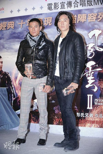 中新網(wǎng)11月23日電 郭富城及鄭伊健 昨日出席電影《風(fēng)云II》合唱版MV啟播禮,早前有指兩人因爭唱主題曲而鬧不和,城城說:“主題曲原本由我獨唱,歌名《風(fēng)云義》亦由我想出來,不過電影公司提議合唱以配合宣傳。”城城表示伊健先錄音,他聽過后覺得伊健表現(xiàn)非常好,而他入行以來未試過與男生合唱,所以感覺很新鮮。