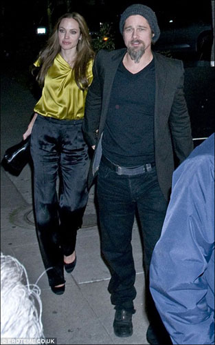 34歲的朱莉身穿黃色絲綢上衣配搭黑色絲綢褲子,臉上一直洋溢著幸福滿足的笑容。而46歲的皮特則身穿深灰色夾克、黑色V領(lǐng)T恤和牛仔褲,兩人堅定相牽的手似乎也在回擊著傳言。