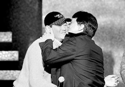 一上臺,趙本山對成龍一口一個 “大哥”——其實(shí)他年齡比成龍大!斑@是成龍大哥的第99部電影,我倆一聽說這個消息……”話還沒說完,小沈陽就接上了:“對,成龍大哥……”