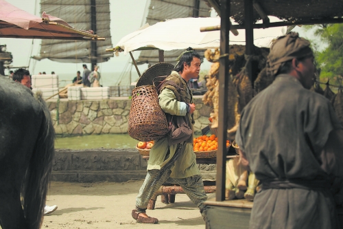 小沈陽的第一場重頭戲是他所扮演的小鞋匠在碼頭上巧遇一位白胡子老翁,受其一番指點和教導(dǎo),這位老翁也是江湖一位武俠高手,之后和趙本山所扮演的河盜一起把武功秘籍傳授給小沈陽。這場戲選擇在無錫影視基地的太湖碼頭拍攝,碼頭邊?恐鴶(shù)艘巨大的帆船,小沈陽進入狀態(tài)非?,這場戲拍攝得也相當(dāng)順利,連在旁觀看的趙本山也忍不住面帶微笑。
